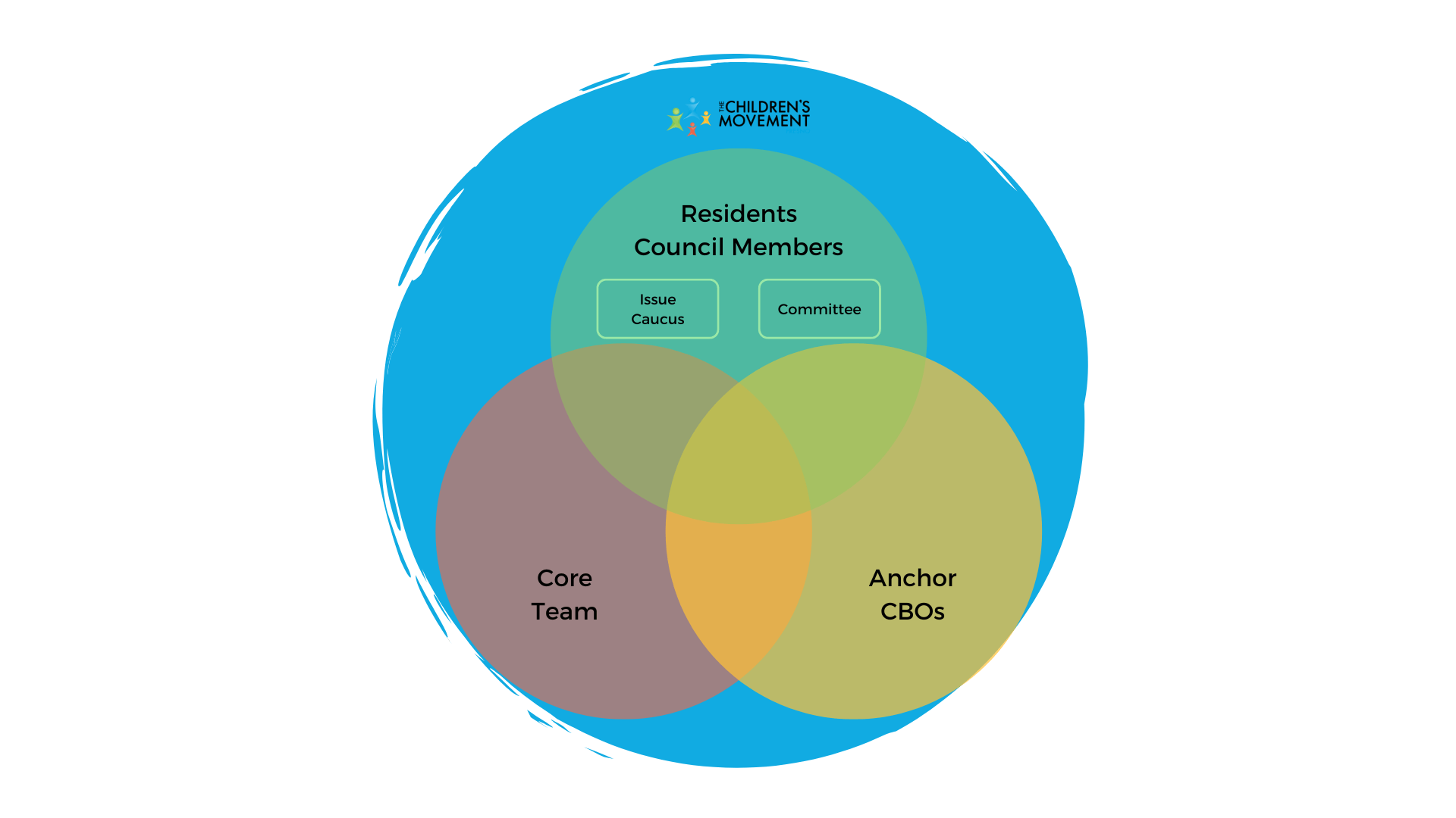 1-2 leaders from an Anchor CBO and gathered from residents in order to ensure a balanced relationship with TCM staff for decision-making.